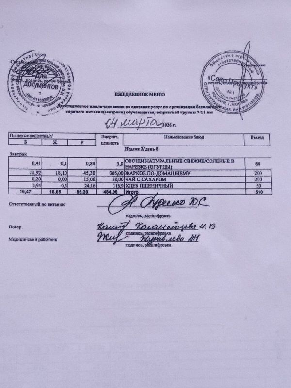 По поручению Правительства Российской Федерации на постоянной основе проводится контроль качества бесплатного горячего питания обучающихся с привлечением родительской общественности. На основании письма Министерства общего и профессионального образования Ростовской области от24.03.2021 № 24/3.2-4158 в период с 01.09.2025 по 25.11.2025 была проанализирована и актуализирована информация во вкладке «Горячее питание» на официальном сайте МБОУ «Шебалинская СОШ им. В. И. Фомичёва», скорректировано ежедневное и перспективное меню. Проведены следующие мероприятия: