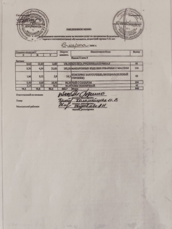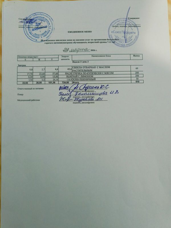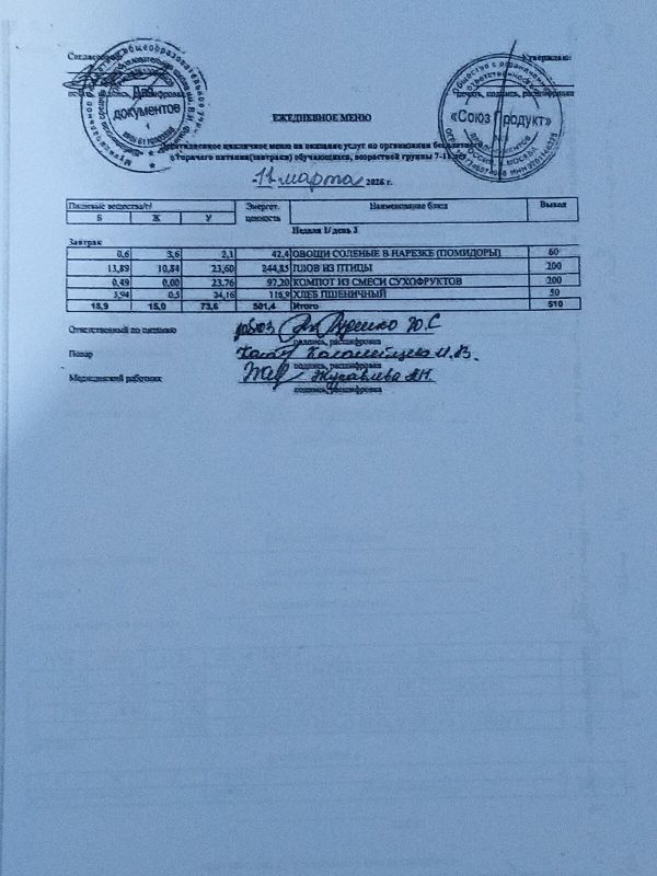 · С 12.01.2026 по 30.05.2026 проводится декада родительского контроля за качеством горячего питания. Проверено наличие и соответствие меню, его размещение на стенде, качество горячего завтрака и обеда для школьников. Температура блюд, вкусовые качества, санитарное состояние столовой, кухни, мест хранения продуктов, наличие разрешительной документации и сертификатов. Оценка родительского контроля за организацию горячего питания «хорошо».