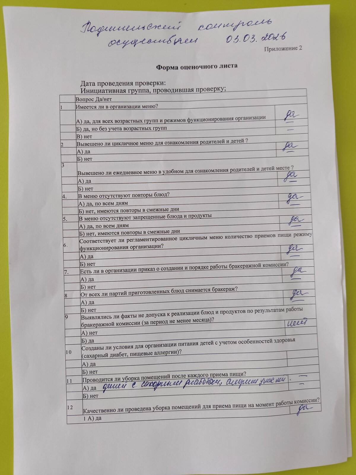 · Ведется ежедневный контроль бракеражной комиссией, записи об итогах проверки комиссии зафиксированы в журнале. Проведены мероприятия на соответствие меню ежедневного перспективному, соответствие размера порций, сроки годности продуктов, внешний вид сотрудников пищеблока, санитарное состояние обеденного зала и т.п.